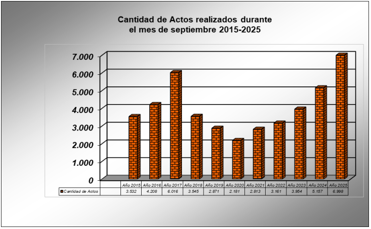 El monto total involucrado en las operaciones fue de $1.162.355 millones, una suba total del 139,8%. En comparación con agosto de 2025, cuando se concretaron 6.370 escrituras, la actividad mostró un avance mensual del 9,9%.
